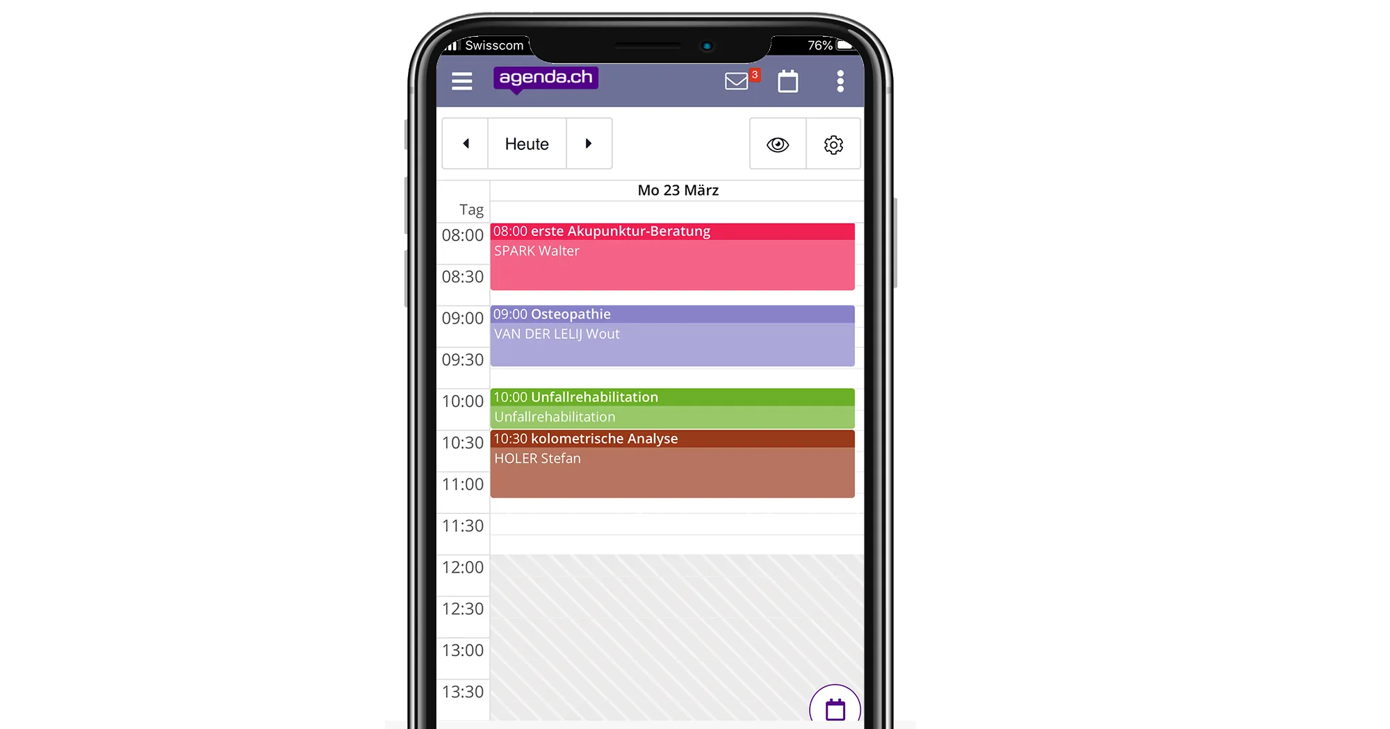 Planen Sie Ihre Termine mit wenigen Klicks und passen Sie die Anzeige nach Ihrem Geschmack an (Farben, Grösse, etc.). Ihre Organisation war noch nie so einfach und effizient.