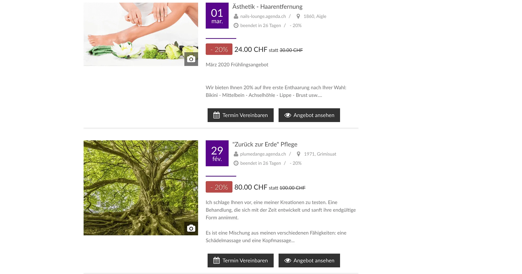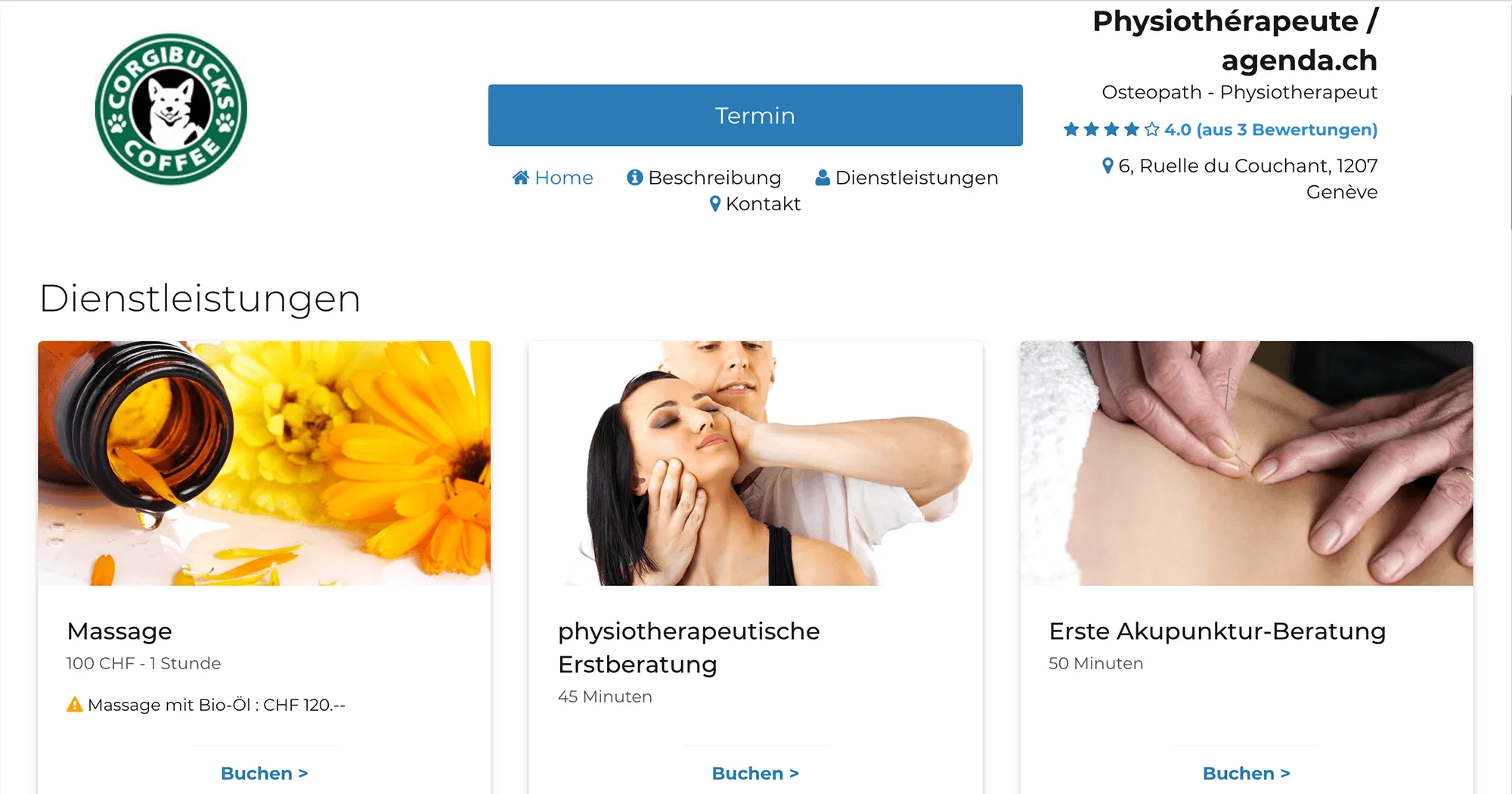 Mit Ihrer personalisierten Mini-Website auf agenda.ch stellen Sie Ihr Geschäft und Ihre Dienstleistungen in den Vordergrund und verbessern gleichzeitig deutlich Ihre Sichtbarkeit bei Google, auch die Ihrer eigenen Website.