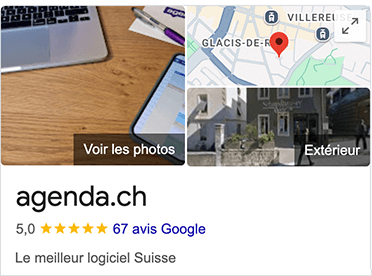 la note de 5/5 sur Google, agenda.ch est une qualité reconnue par nos clients.
